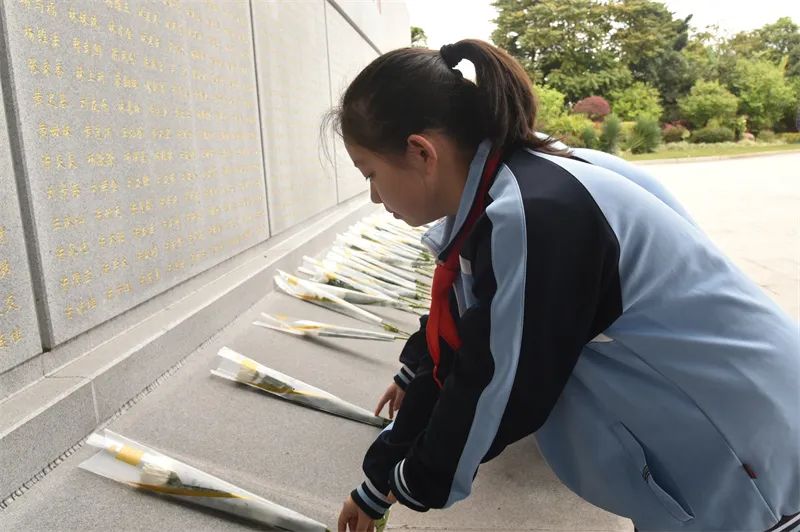 随后,在烈士陵园讲解员的引导下,现场学生以多种形式缅怀先烈。在烈士墓区,师生们怀着崇敬之心,用心擦拭烈士墓碑,满怀感恩之情,书写寄语卡片,表达对英烈的缅怀之情,厚植爱党爱国的情怀;在英烈事迹馆,大家认真聆听讲解,仔细观察实物和珍贵的图片,一起缅怀革命先烈,致敬平凡而伟大的英雄。