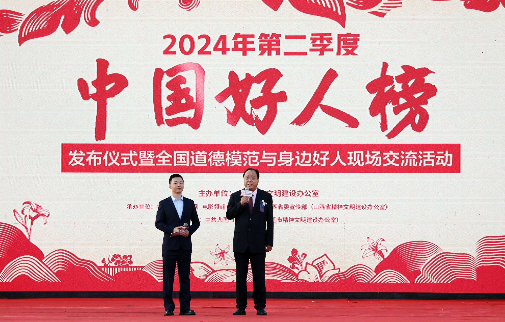 7月30日,2024年第二季度“中国好人榜”发布仪式暨全国道德模范与身边好人现场交流活动在山西省大同市举办。经各地推荐、网友评议和专家评审等环节,共有153人(组)助人为乐、见义勇为、诚实守信、敬业奉献、孝老爱亲身边好人光荣上榜。