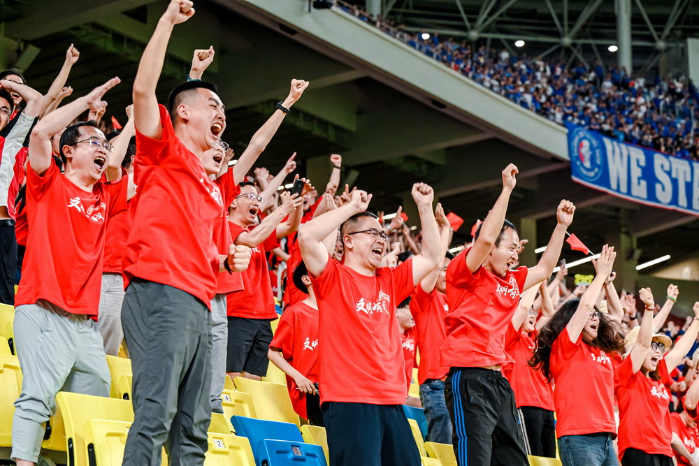 成都凤凰山球场“公益看台”观众为赛场运动员加油。成都市文明办供图