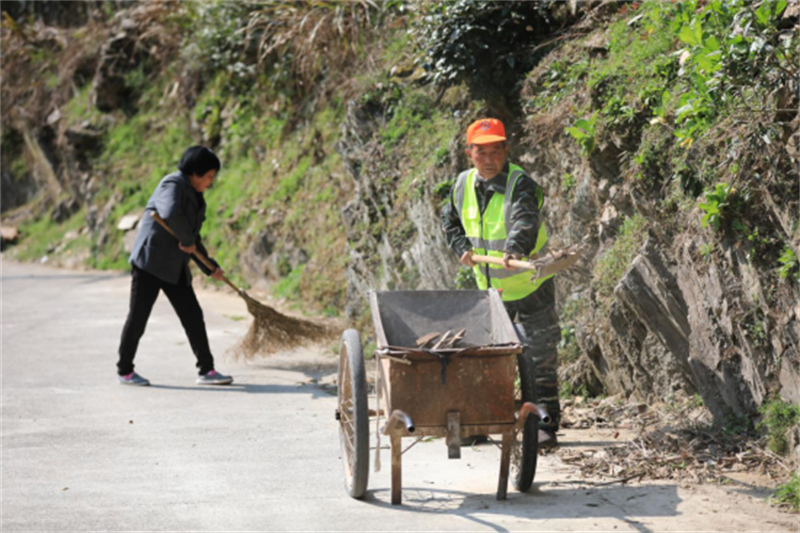 后来,乡政府牵头拓宽路面,资金成了难题。钱不够,大家凑。王诗进第一个站出来,和老伴一起捐了1000元。“自个儿是党员,拓路又是好事,自己不带头,哪能叫别人先捐钱?”在他的带领下,资金很快募集到位,拓路工程如期启动。为了缓解资金压力,他又带着村里的党员、干部和热心群众们义务投工投劳,每天早出晚归,不论阴晴,历时一年半,“板车路”顺利升级成柏油路,车辆行驶更方便了,茶叶、笋干、香榧等农副产品源源不断运出大山。