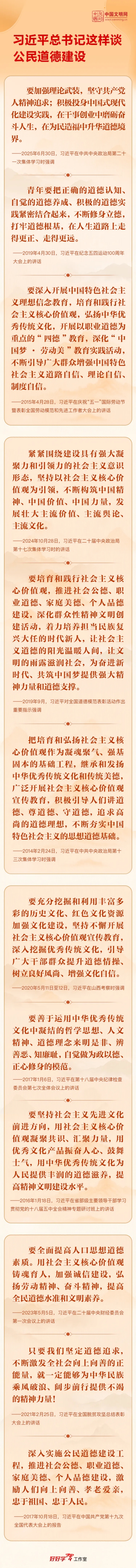 精神的力量是无穷的,道德的力量也是无穷的。党的十八大以来,以习近平同志为核心的党中央高度重视公民道德建设,作出了一系列重要部署,推动思想道德建设取得显著成效。在第23个公民道德日到来之际,让我们一起学习,为实现中华民族伟大复兴的中国梦凝聚起强大的精神力量和有力的道德支撑。