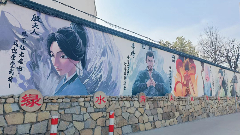 韩家窝村“哪吒”主题墙绘。淄博文明网供图