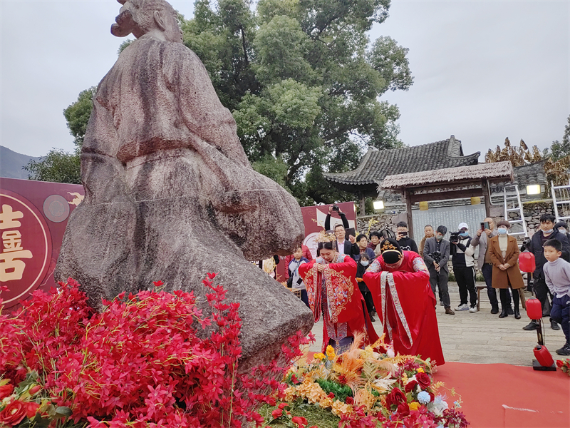 浙江乐清淡溪镇梅溪村一对新人在梅溪草堂举办新中式婚礼。