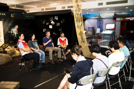 7月10日,北京市西城区文化馆相关负责人介绍《一条大河波浪宽》话剧的创作过程。新华网 钟奕 摄