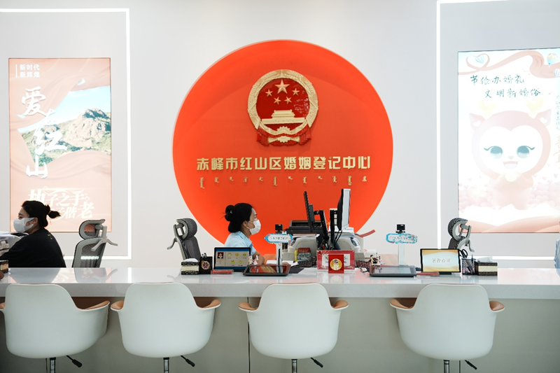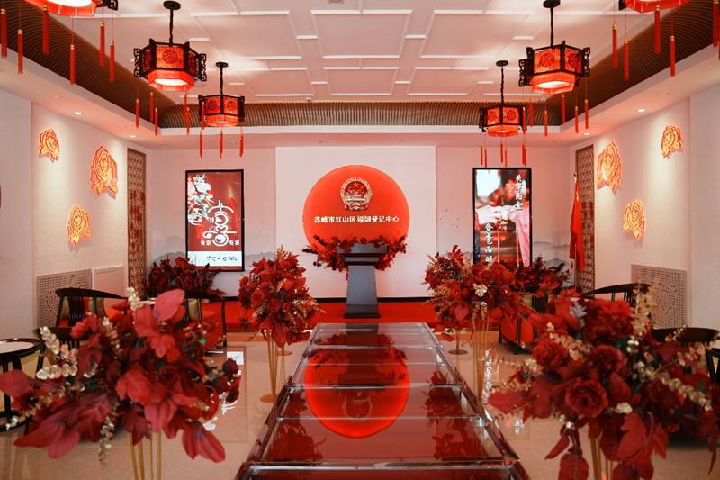 赤峰市红山区婚姻登记中心中式颁证厅。 新华网发 (赤峰市融媒体中心记者 孙雁南 摄)