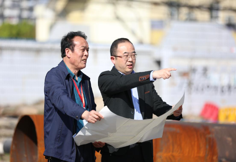 潘明杰在调解涉及拆迁的矛盾纠纷时,与街道综治办同志到现场比对图纸。宁波文明办供图