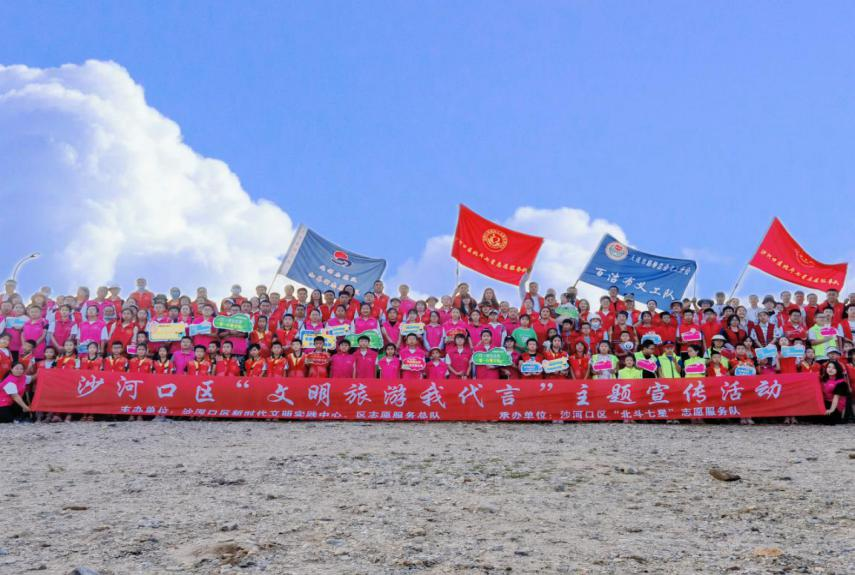 大连市沙河口区新时代文明实践中心结合全市旅游旺季游客需求,在各大景区景点开展文明旅游主题志愿服务。(图片来源:大连市文明办)